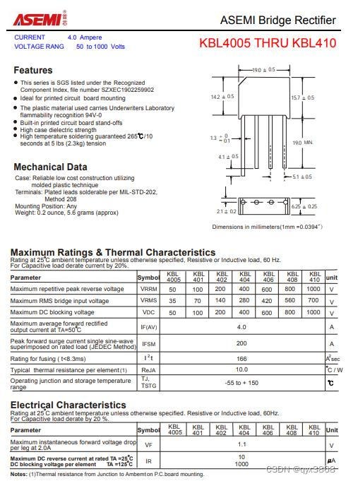 工作结和储存温度范围(TJ, TSTG):-55 to +150℃