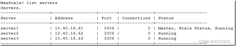 可以看到slave恢复后,又会自动加入到maxscale中来。