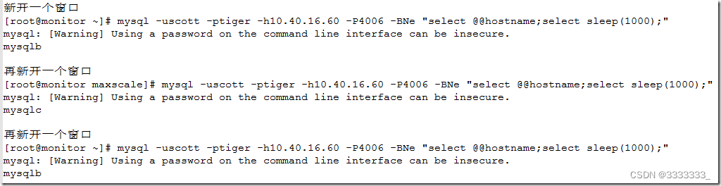 [root@monitor ~]# mysql -uscott -ptiger -h10.40.16.60 -P4006