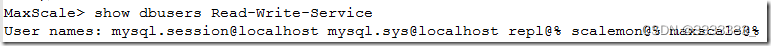 路由账号,maxscale使用该账号将不同的请求分发到不同的节点上。当客户端连接到maxscale这个节点上时,maxscale节点会使用该账号去查后端数据库,检查客户端登陆的用户是否有权限或密码是否正确等等。