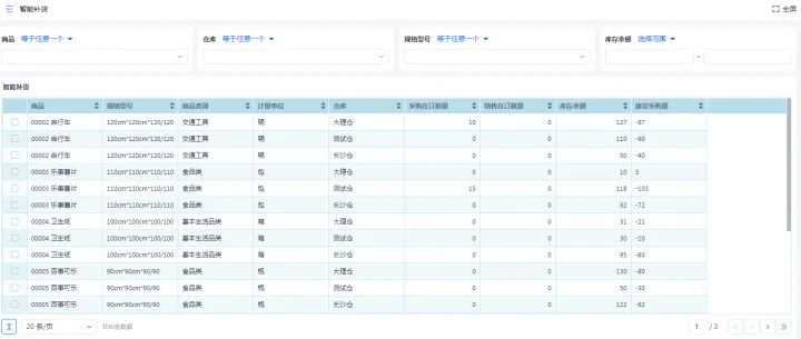 6、智能补货是可以通过查看各个商品采购及销售数量、库存数量来计算出建议采购量从而生成采购订单;