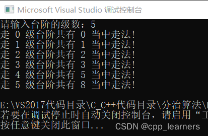 - printf("请输入台阶的级数:");