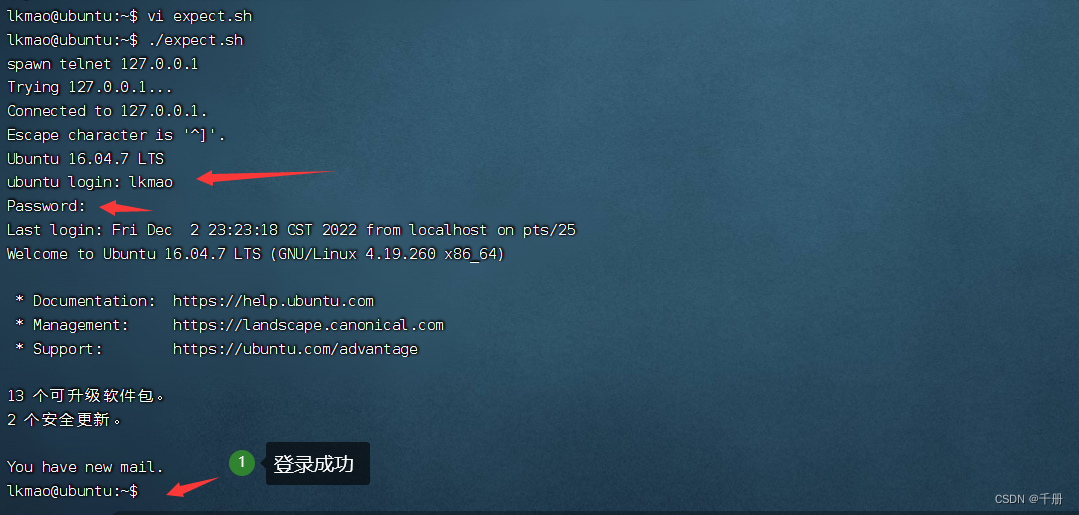 - lkmao@ubuntu:~$ telnet 127.0.0.1