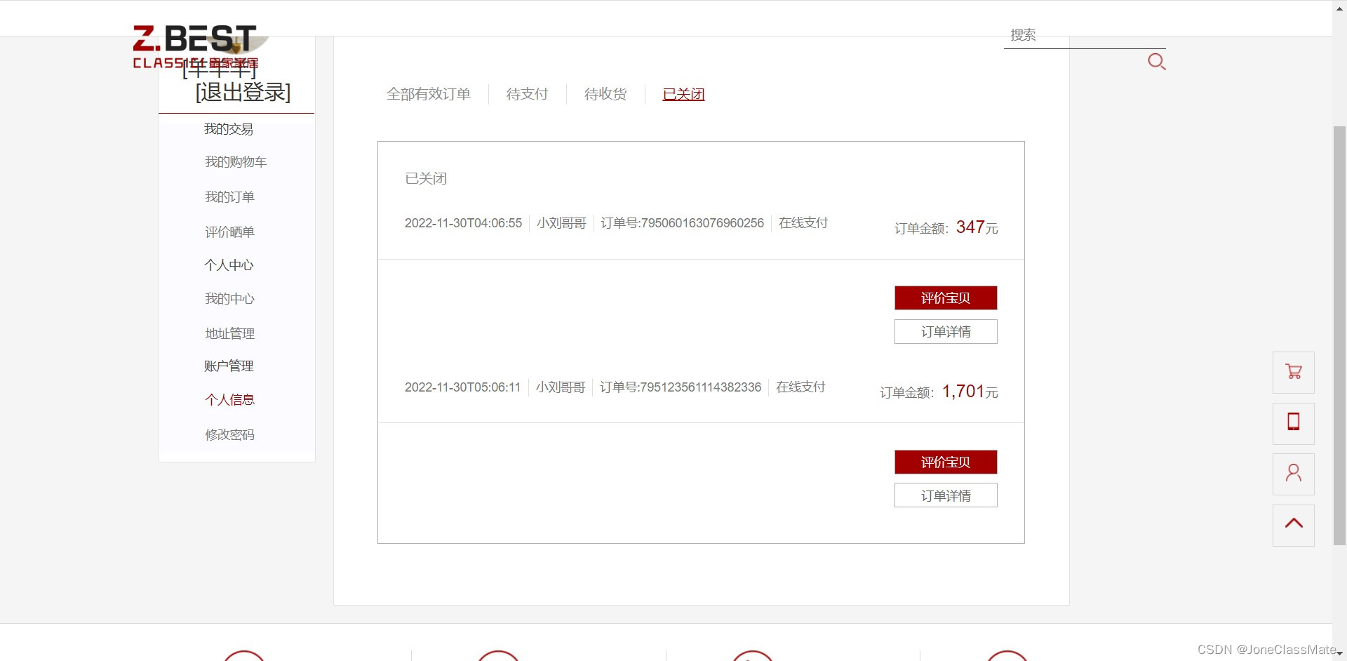 2.2 我的订单(全部有效订单,待支付,待收货,已关闭)
