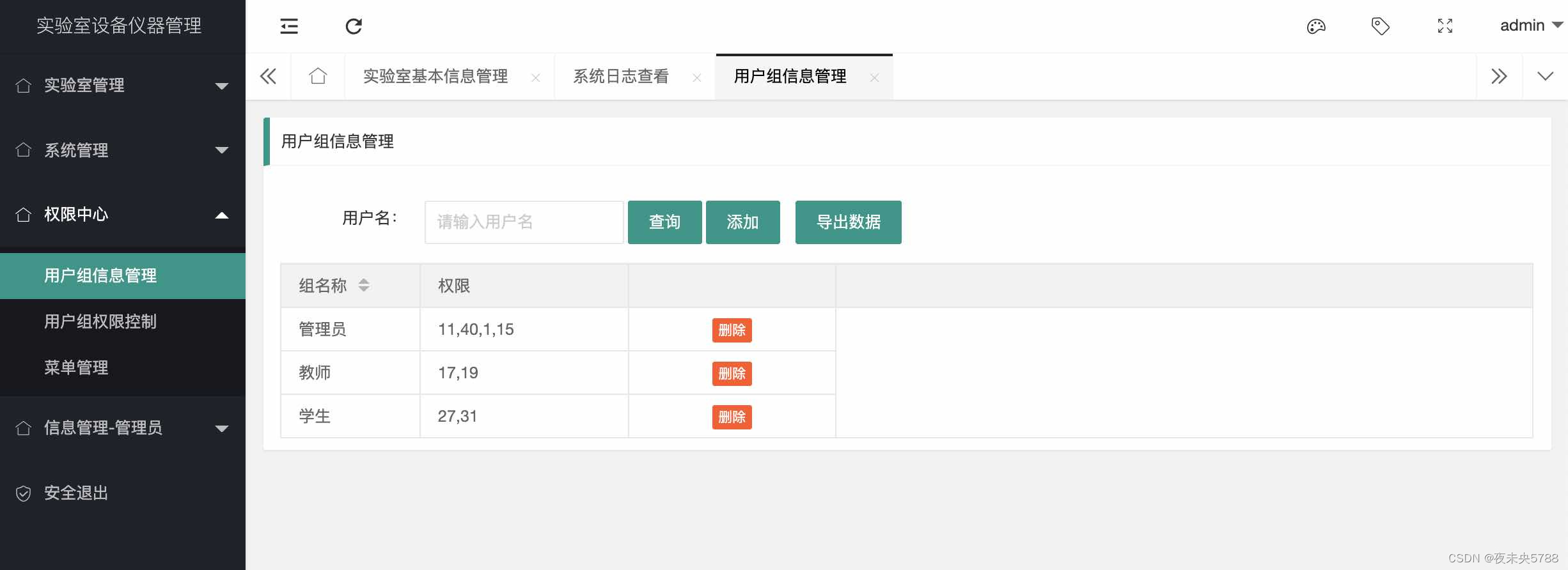 权限中心:用户组信息管理、用户组权限控制、菜单管理;