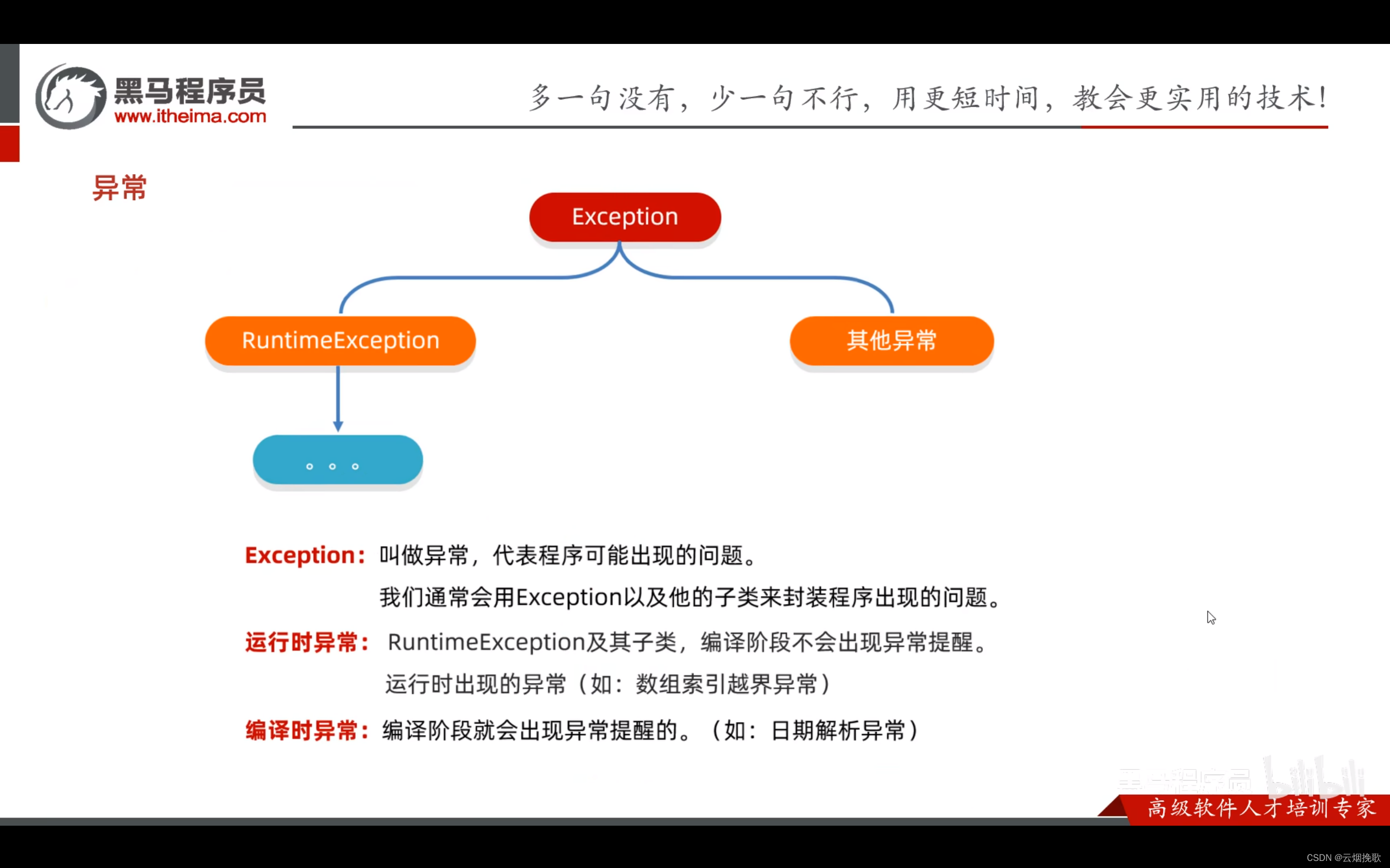 运行时异常:RuntimeException本身和所有子类,都是运行时异常。编译阶段不报错,是程 序运行时出现的。一般是由于参数传递错误带来的问题