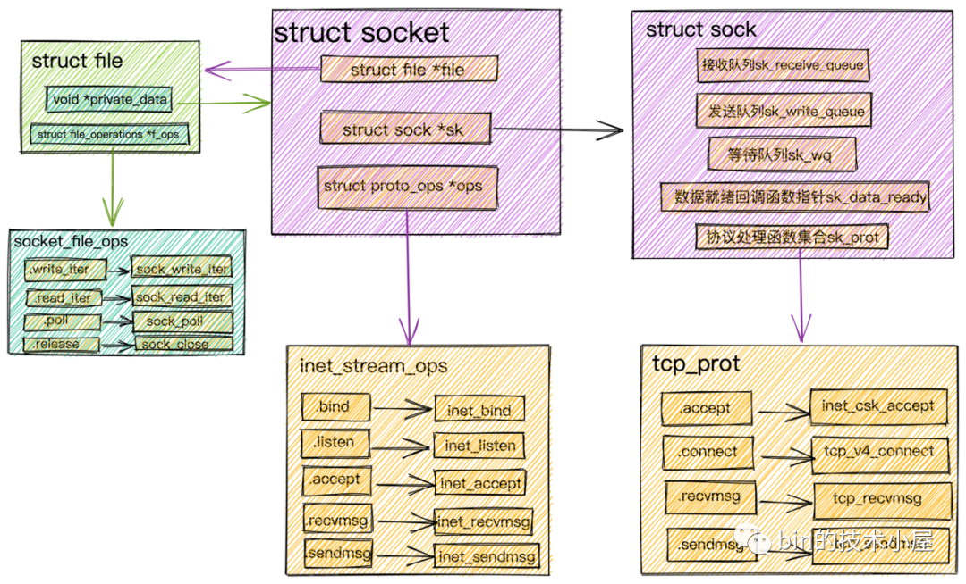 又在此基础之上介绍了针对 socket 文件的相关操作及其对应在内核中的处理流程: