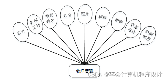 教师管理;在教师管理页面中可以对索引,教师工号,教师姓名,姓名,照片,班级,职称,联系电话,教师邮箱等内容进行详情,修改和删除操作;如图5-6所示。