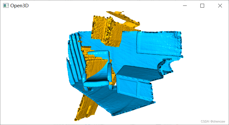 (3)发现结果还真不错,看看上一个教程icp中提到的两个指标fitness=6.745798e-01, inlier_rmse=3.051079e-02