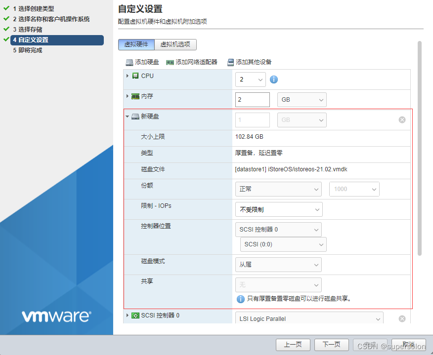 内存:2G,勾选【预留所有客户机内存(全部锁定)】