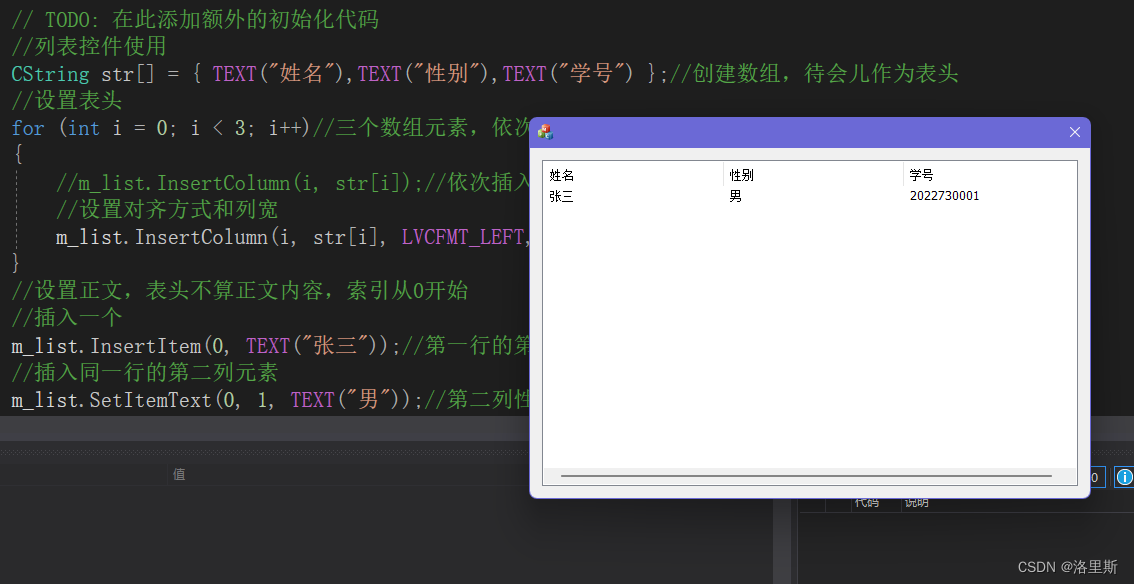 - m_list.SetItemText(0, 2, TEXT("2022730001"));//第一行的第三列学号