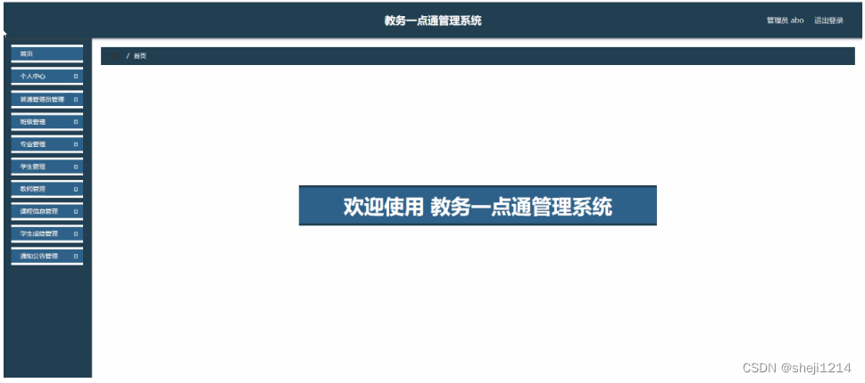 管理员通过登录进入系统可查看个人中心、普通管理员管理、班级管理、专业管理、学生管理、教师管理、课程信息管理、学生成绩管理、通知公告管理等内容,,如图5-2所示。