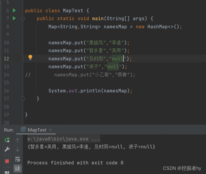 根据key值搜索Map中对应的value值,若没找到,返回默认值defaultvalue(此方法经常和map.put方法搭配使用,简化代码逻辑,多用于解决重复元素出现统计次数问题)