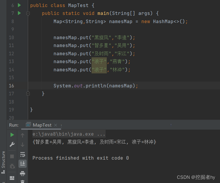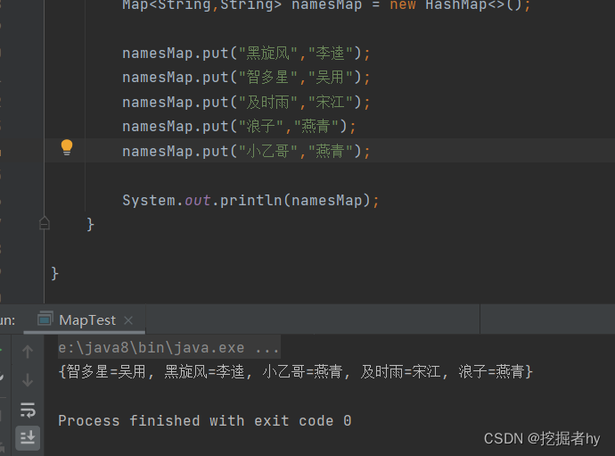 3. 在Map集合中,键值对之间是无序的,元素的保存顺序和添加顺序无关
