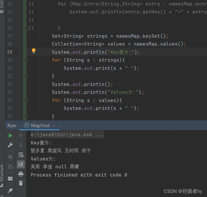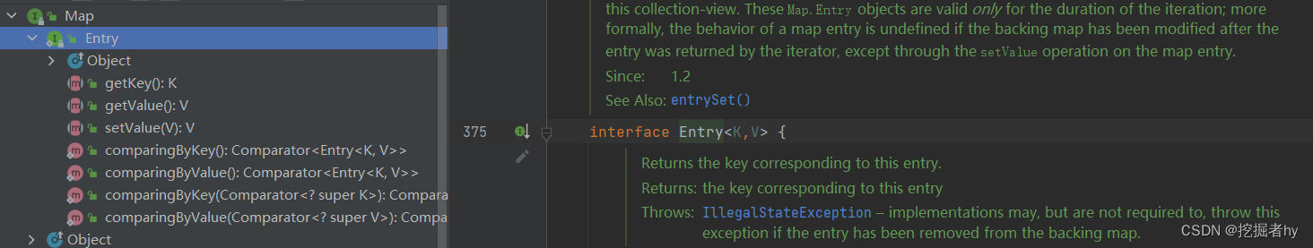 Map接口存储键值对对象时,内部存储的都是一个个Map.Entry对象 ,即:将Map对象转换成Set对象,Set对象的内部就存储在Map的一个个键值对Entry对象,转为Set对象之后就可以方便的使用for-each循环进行遍历,其中的每个元素就是Map的Entry对象(Map.Entry这个接口是map接口的内部接口)