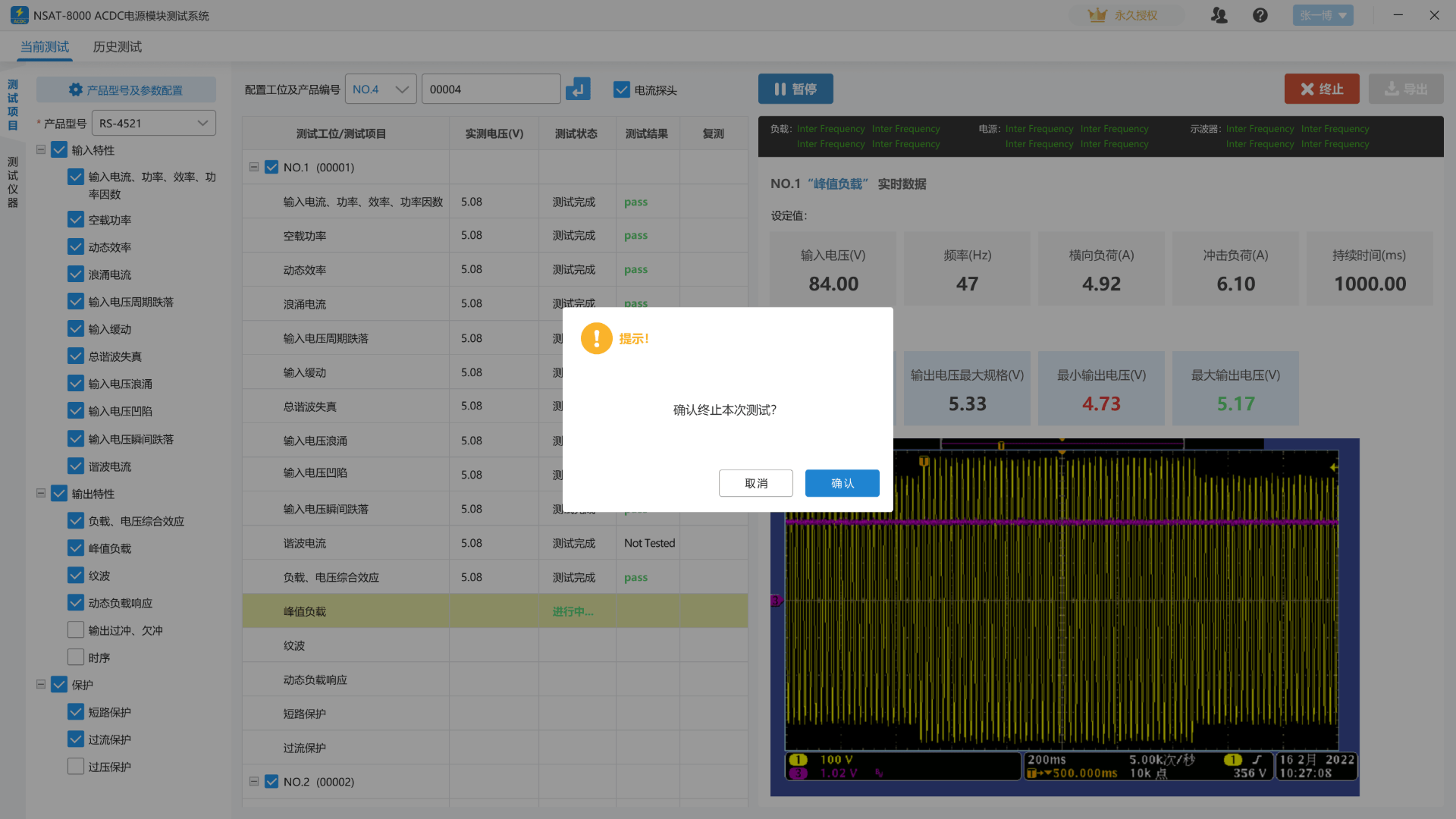 如果需要终止本次测试,点击终止按钮,系统会弹窗提示,点击确认按钮,终止本次测试。