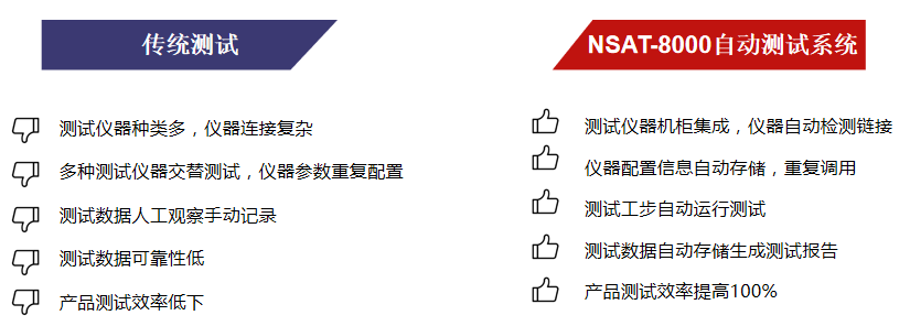 ◆NSAT-8000电源模块自动测试系统利用可编程直流电源为被测电源模块供电,用可编程直流电子负载模拟各种负载条件,完成对各类电源模块的一体化自动化测试,并依照指定格式在本地保存测试报告。该系统系统集成多种测试仪器,自动检测链接,编辑测试工步,自动运行测试并保存测试数据、生成测试报告,产品测试效率提高50-100倍。
