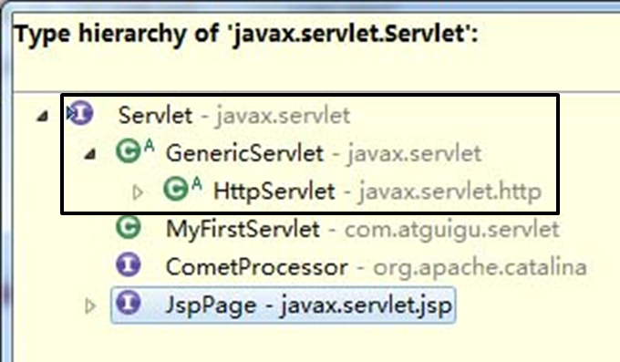 ●从狭义上来讲,Servlet指的是javax.servlet.Servlet接口及其子接口,也可以指实现了Servlet接口的实现类。
