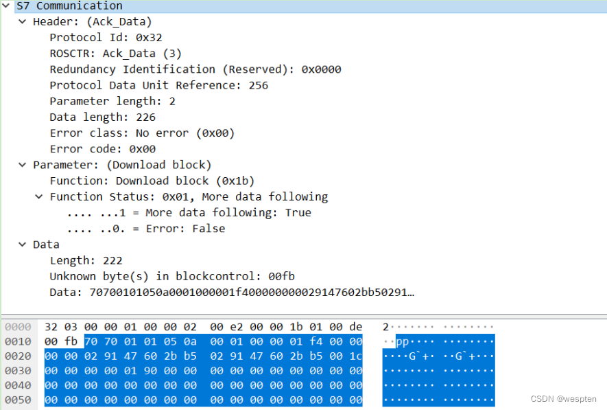 中间0000 0000 0000 0000是wireshark解析错了按照官方的应该为四位后八位,表明的是局部列表的序号,我们只需要关注最后两位就行(0x00)。
