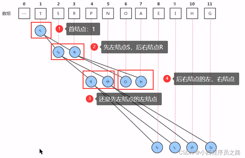 特性2,通过数组实现完全二叉树的表达:(利用数组来实现堆的这个二叉树)