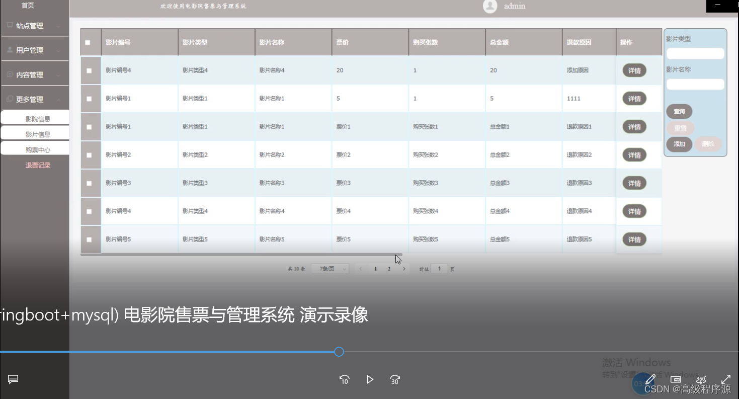 影片信息管理:对影片信息进行维护,添加、删除、修改信息。