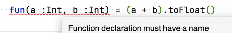 fun (a:Int,b:Int):Float{ return (a+b).toFloat()}(5,5) ) // 匿名函数直接调用