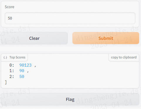 运行程序后,打开 http://localhost:7860 即可看到网页效果。左边是文本输入框,右边是结果展示框。Clear按钮用于重置网页状态,Submit按钮用于执行处理程序,Flag按钮用于保存结果到本地。