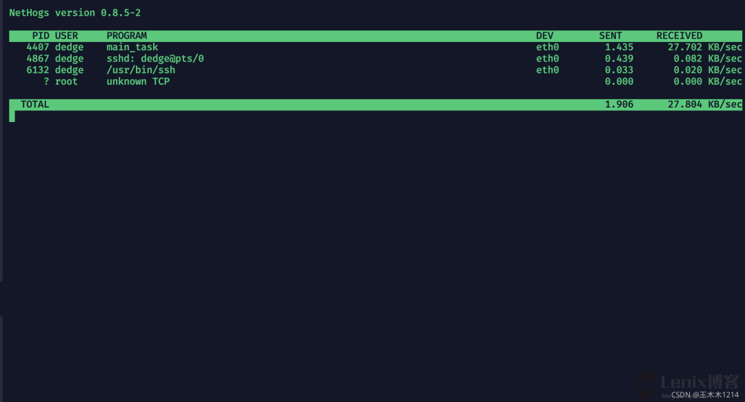 nethogs:查看单个进程流量而设计的工具,按照进程进行带宽分组