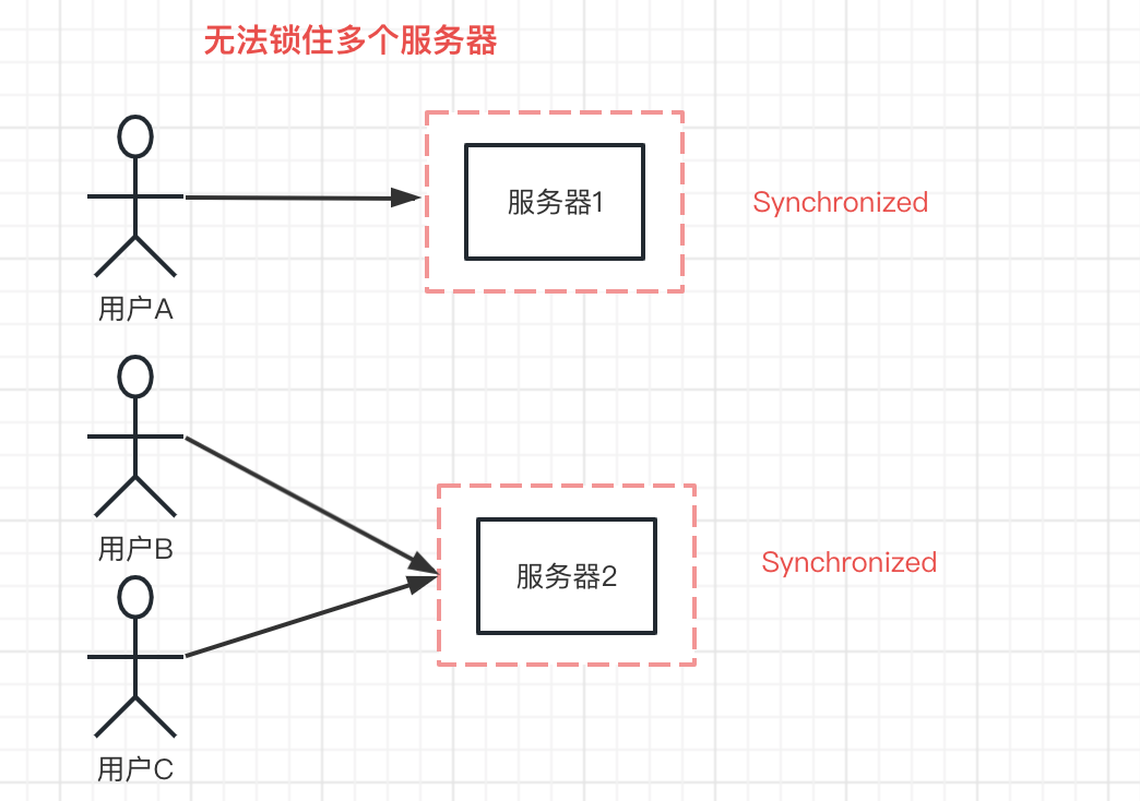 但是如果想要锁定多个节点服务,synchronized就不适用于了: