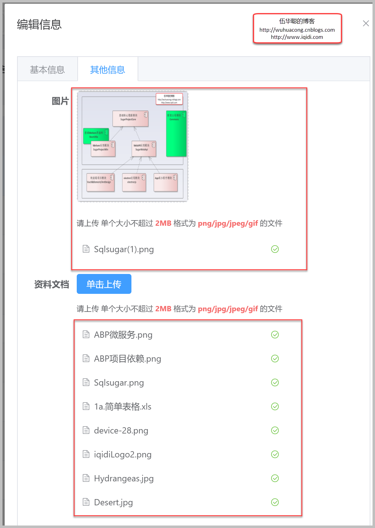 如果我们需要在项目中实现业务的图片上传功能,如下界面所示的效果。