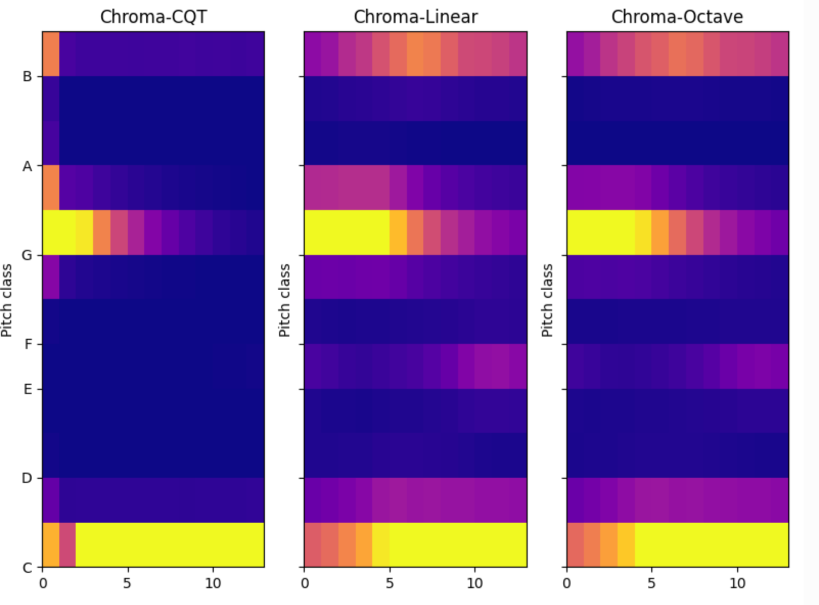 很明显,CQT-Chroma优于其它频谱类型下的chroma。