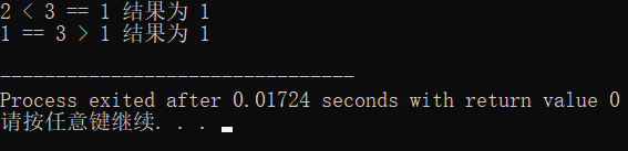 printf("2 < 3 == 1 结果为 %d\n", 2 < 3 == 1);
