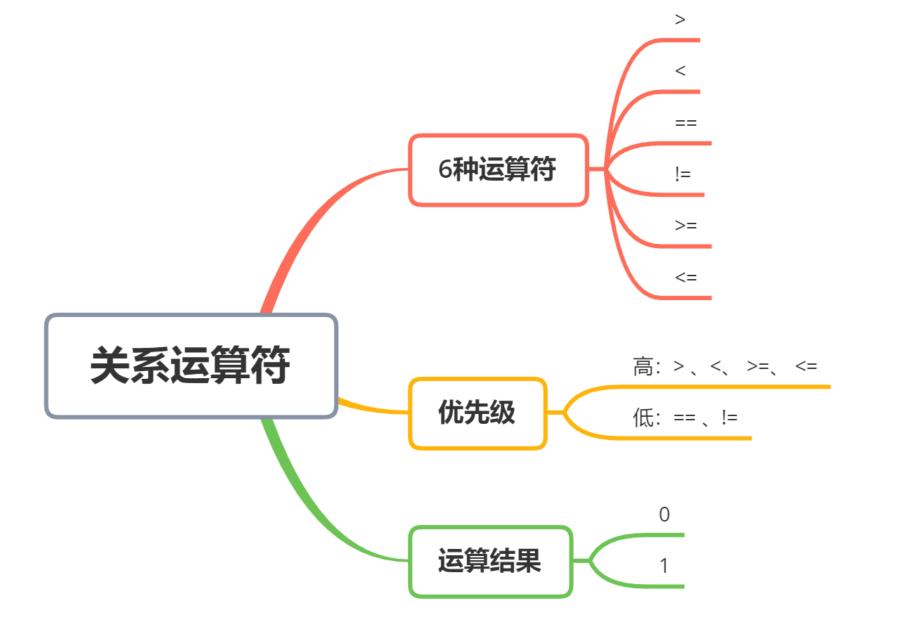- 关系运算符的作用是判断符号两边大小的关系