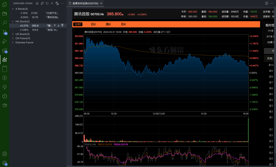 它可以帮助开发者方便的在VSCode中实时的查看股票涨跌信息。该插件目前支持多种数字货币交易所,包括 OKEx、Huobi、Binance 等等。
