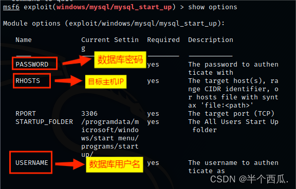 use exploit/windows/mysql/mysql_start_up //使用外连模块.