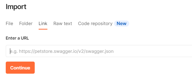 swagger 还支持在线链接导入的方式,直接把文档的 json 格式在线地址填到 link 中的 url 栏就可以。