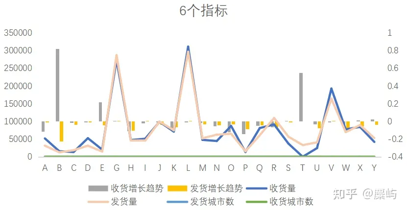 思路提要:首先根据题目选取指标,各个城市的总累计收货量(收货量)、累计发货量(发货量)、平均月度增长率或线性拟合的斜率代替(快递数量增长/减少趋势)、收货来自的城市数目和发货至的城市数目、与其他城市的时间序列相关系数平均值(相关性)。然后根据附件1数据计算出这些指标。