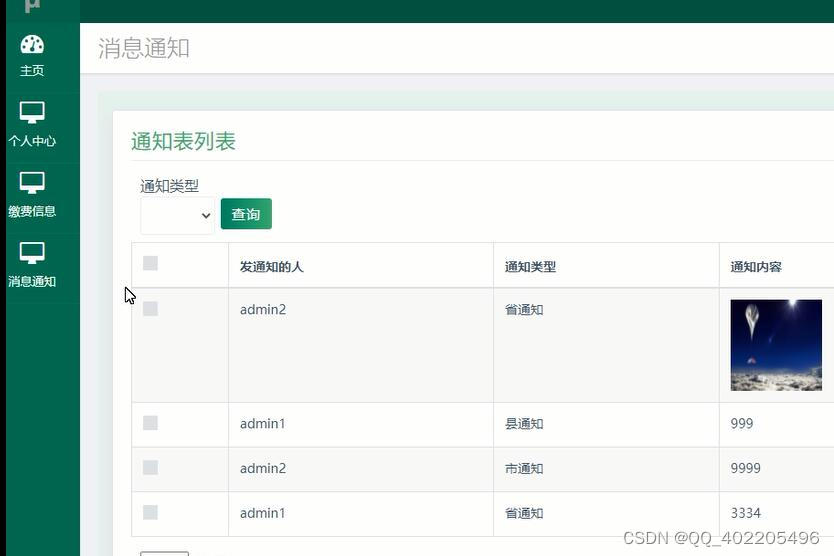 财务管理员登入后台后有个人信息的展示,可进行一个缴费信息的导入导出,发放缴费信息的通知,缴费情况的统计