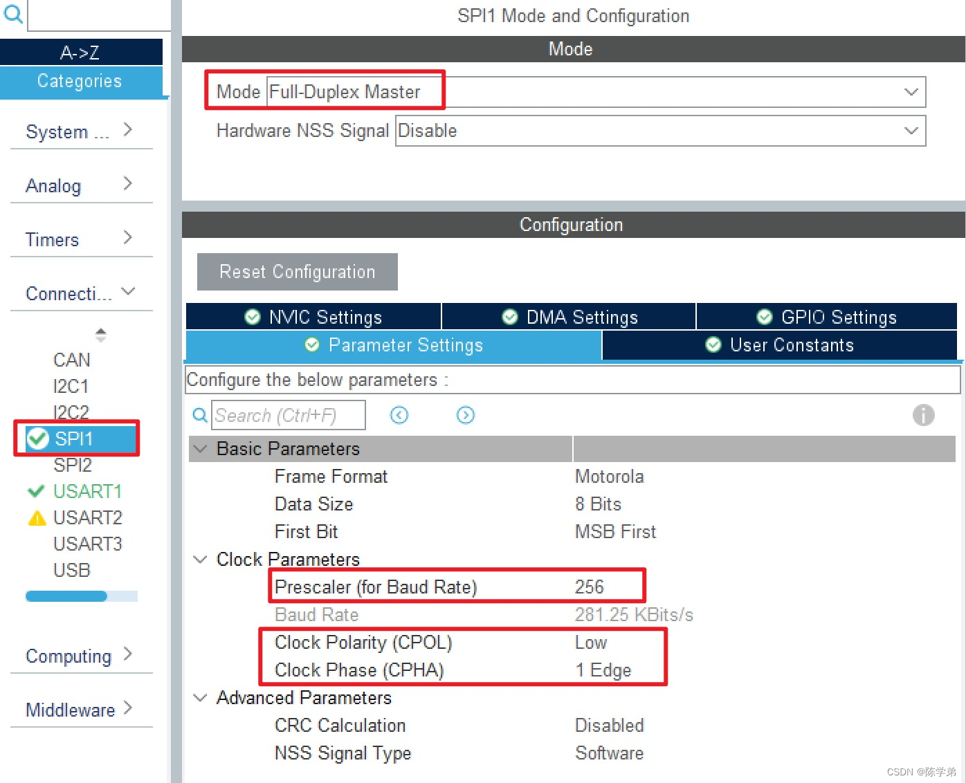 - hspi1.Init.BaudRatePrescaler = SPI_BAUDRATEPRESCALER_256;