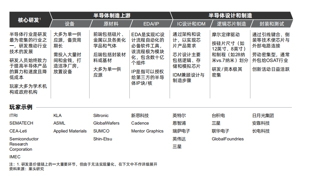 近年来,伴随网络化、信息化、智能化飞速发展,半导体的应用领域不断拓展,在全球经济及社会发展中的重要性与日俱增。与此同时,越来越多的国家纷纷加码半导体,各个国家在半导体价值链中拥有不同的竞争优势。目前,中国厂商在通讯芯片、模拟芯片与OSD设计、成熟制程制造与封测环节产生较多的营收,而在前端设备和原材料市场处于起步阶段,正逐步获取市场份额。