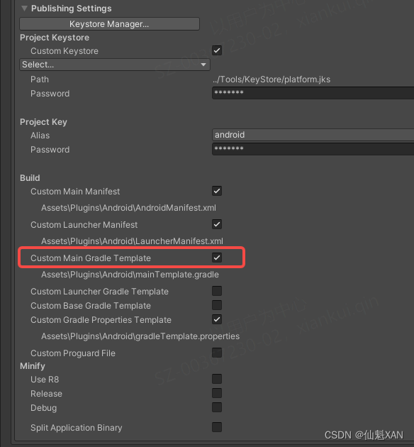 3、在配置中勾选 一下 Custom Main Gradle Tempale