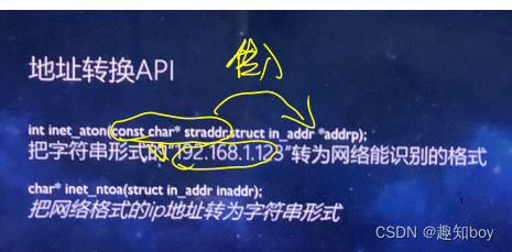 你可能对出现的htons()、htonl和inet_pton()不知道是何意,在网络传输中,不同的机器端不一样,有的机器是大端有的机器是小端。这些函数是为了帮助你在传输网络数据的时候统一格式。(没有超过一个字节不需要转)