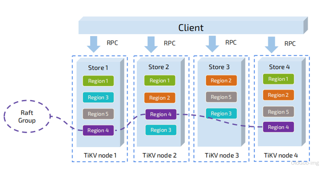- TiKV Server:负责存储数据,从外部看 TiKV 是一个分布式的提供事务的 Key-Value 存储引擎。存储数据的基本单位是 Region,每个 Region 负责存储一个 Key Range(从 StartKey 到 EndKey 的左闭右开区间)的数据,每个 TiKV 节点会负责多个 Region。TiKV 的 API 在 KV 键值对层面提供对分布式事务的原生支持,默认提供了 SI (Snapshot Isolation) 的隔离级别,这也是 TiDB 在 SQL 层面支持分布式事务的核心。TiDB 的 SQL 层做完 SQL 解析后,会将 SQL 的执行计划转换为对 TiKV API 的实际调用。所以,数据都存储在 TiKV 中。另外,TiKV 中的数据都会自动维护多副本(默认为三副本),天然支持高可用和自动故障转移。