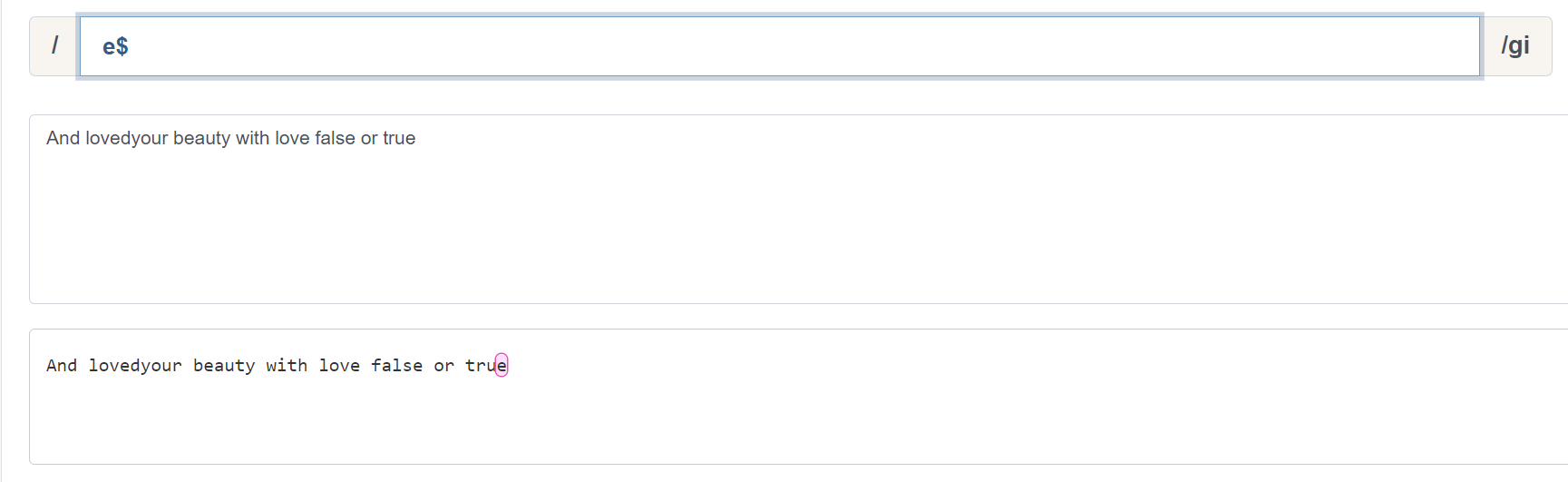 可以看到,加入了 ^ 后,an 的匹配只会从行首开始匹配,我们这里加入 i 修饰符,表示不区分大小写的匹配。& 同理: