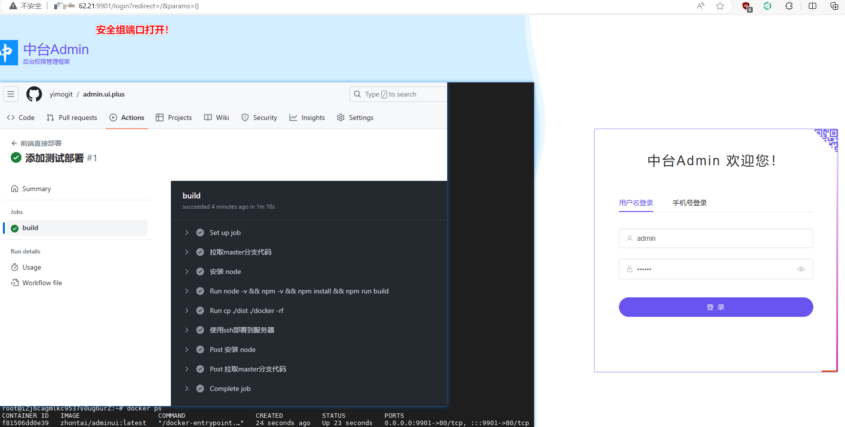 - 记得开启云服务器的防火墙端口:9901,即可在浏览器中访问到前台页面