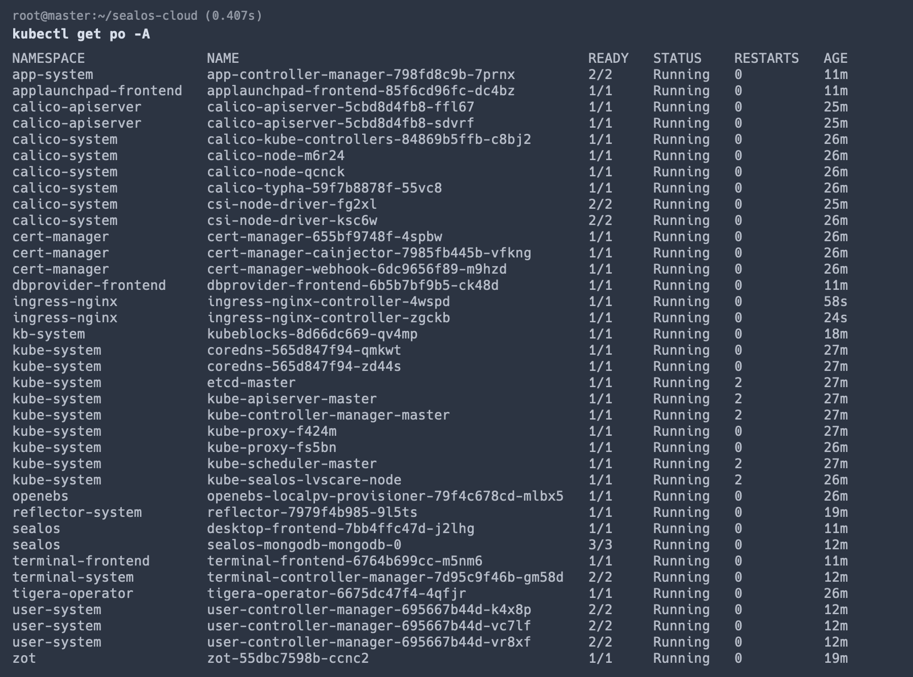 echo "wait for all pod to be ready then install Sealos"
