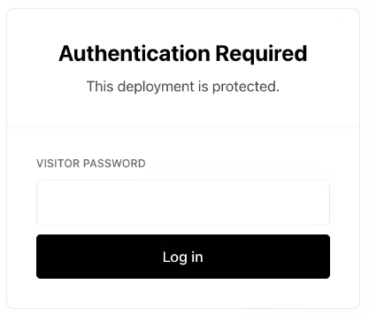 聊聊部署保护,vercel 支持单个部署添加密码保护或者直接将部署设置为私有化部署,前者需要输入预设的密码才能访问地址,后者可以直接大范围让所有部署地址变成私有化,你可能需要密码或者 vercel 身份效验才能访问,比如企业版中我们可能不希望团队外任何人访问测试地址。
