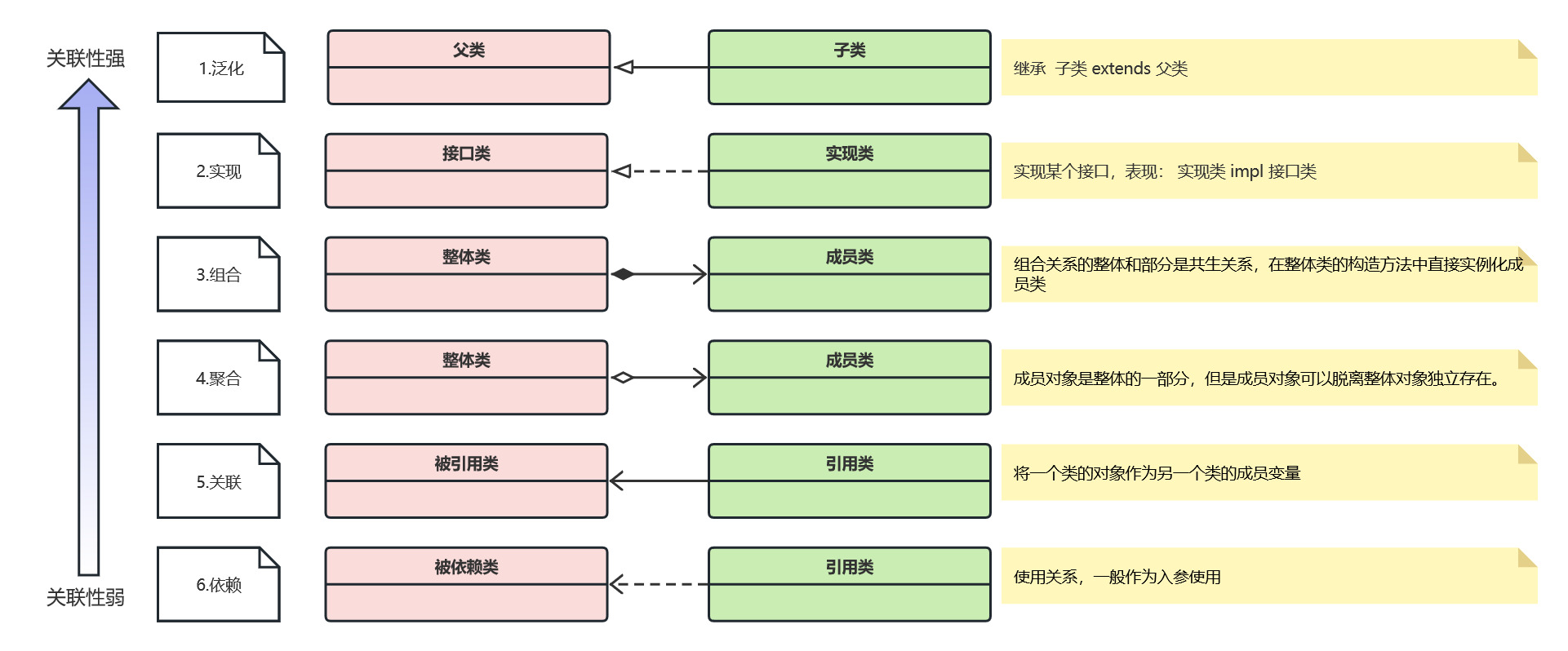 本文需要使用静态图的一种:类图。关注类图中类之间的6种关系(耦合度大小排序):泛化 = 实现 > 组合 > 聚合 > 关联 > 依赖。