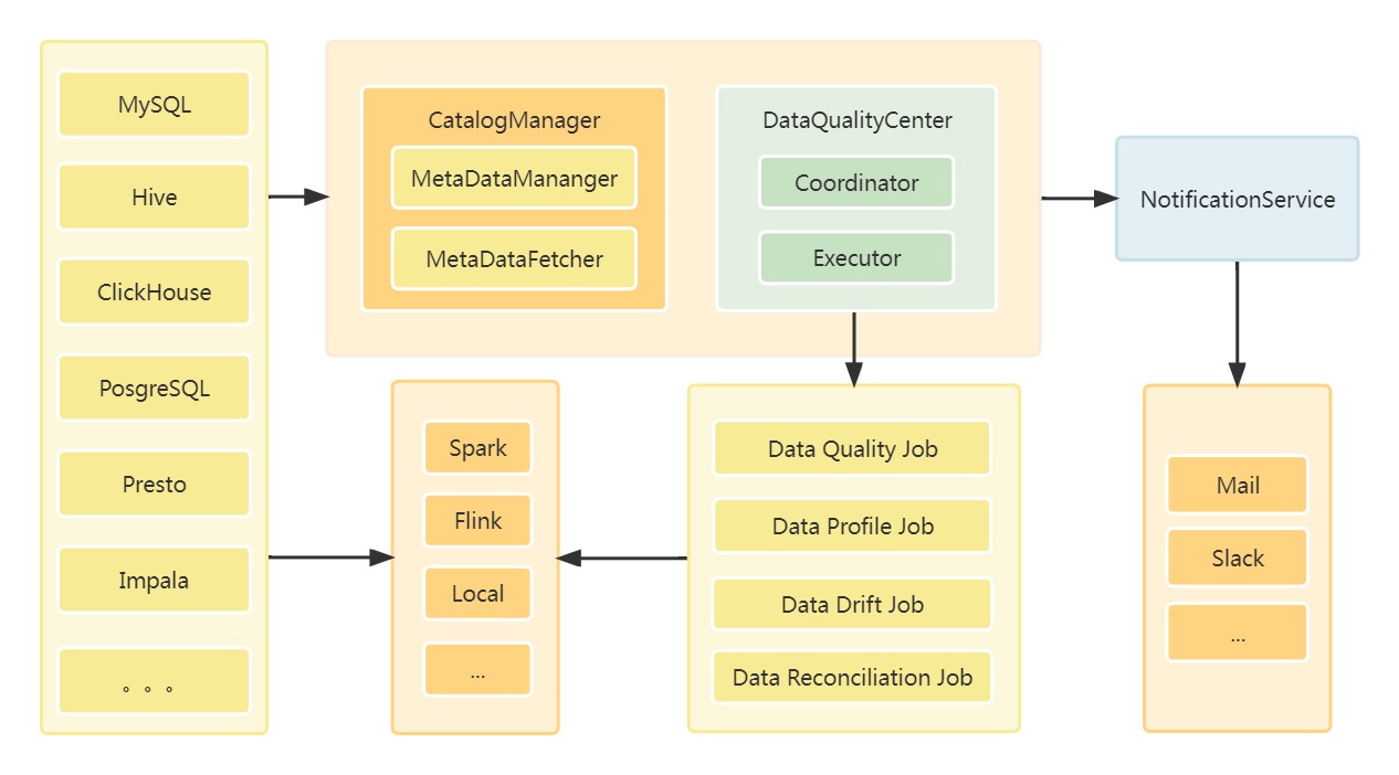 DataQualityCenter 是负责数据质量管理的组件,主要负责数据质量规则的管理、数据质量作业的调度、执行和自动容错处理等。