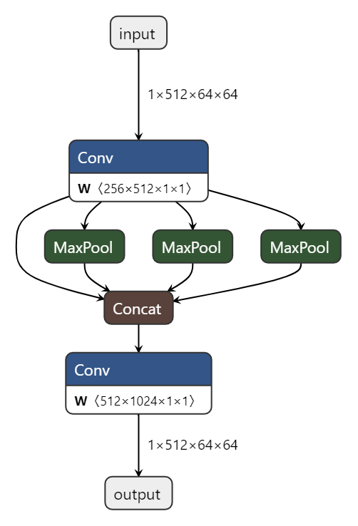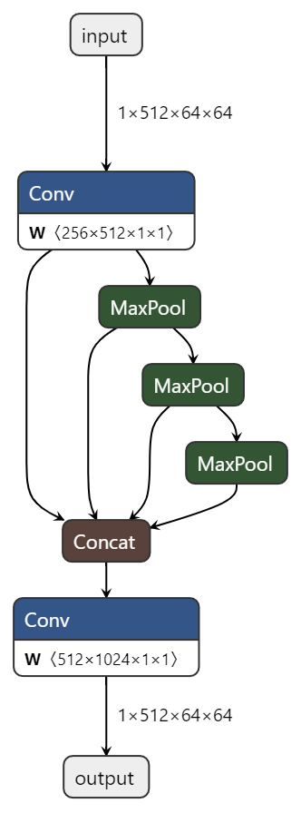 2014年何恺明提出了空间金字塔池化SPP,能将任意大小的特征图转换成固定大小的特征向量。在Yolov5中,SPP的目的是在不同尺度下对图像进行池化(Pooling)。这种结构可以在不同尺寸的特征图上利用ROI池化不同尺度下的特征信息,提高模型的精度和效率。在YOLOv5的实现中,SPP结构主要包含两个版本,分别为SPP和SPPF。其中,SPP代表“Spatial Pyramid Pooling”,而SPPF则代表“Fast Spatial Pyramid Pooling”。两者目的是相同的,只是在结构上略有差异,从SPP改进为SPPF后(Yolov5 6.0),模型的计算量变小了很多,模型速度提升。结构图如下图所示,下面的Conv是CBS=conv+BN+SiLU。
